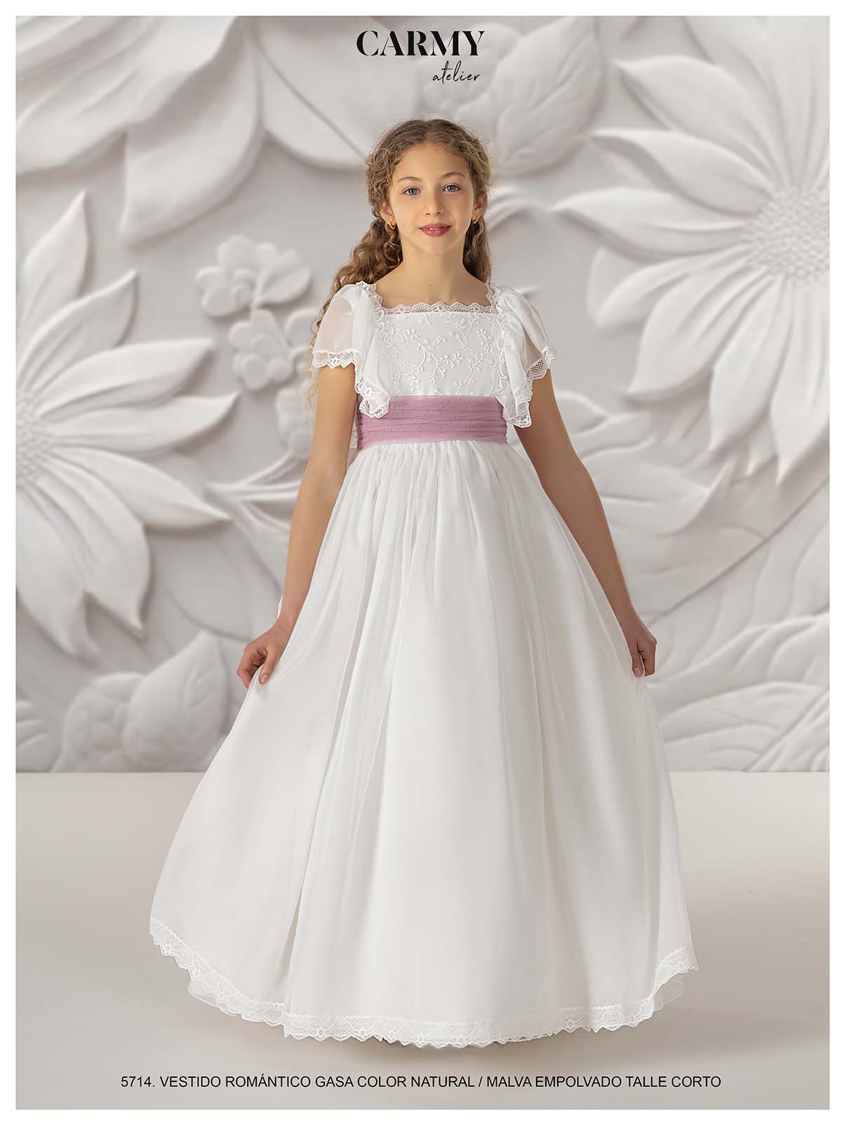 Romantic communion dress made of linen. The combination of natural colors and makeup with polka dots provides a sweet and elegant appearance. With a short waist, this dress is perfect for girls who want a modern and sophisticated look. The quality of the linen and the meticulous details ensure a comfortable and beautiful garment, ideal to stand out on an occasion as special as communion, making every moment an unforgettable memory.