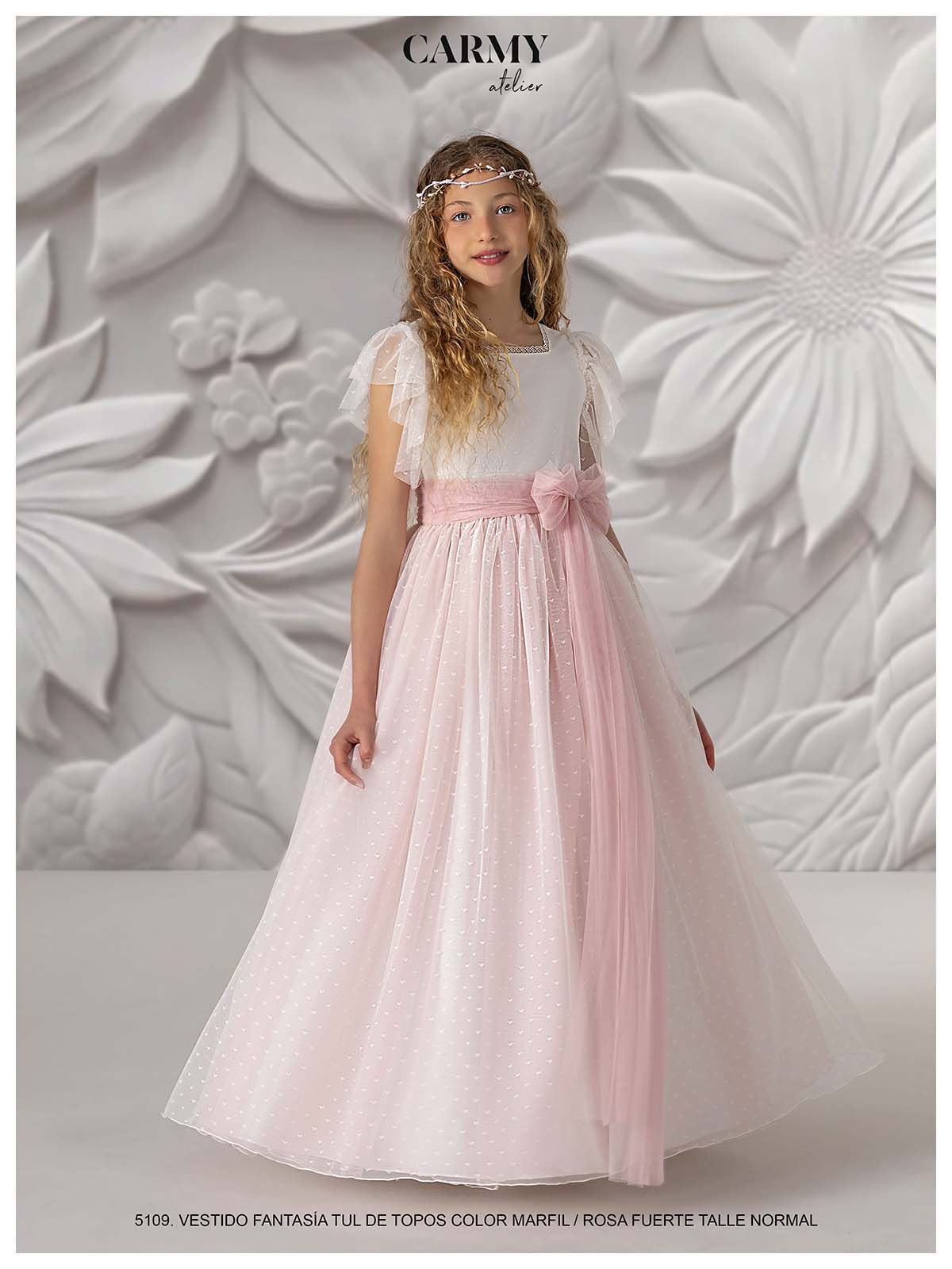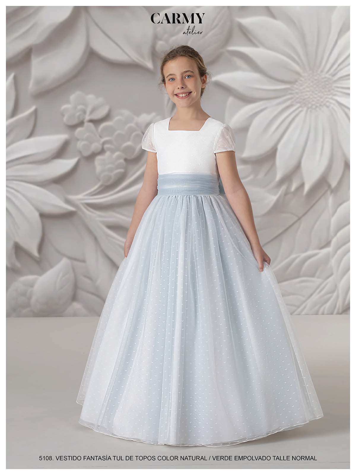 Este vestido es perfecto para una ocasión tan especial como la comunión, garantizando que la pequeña luzca radiante y llena de encanto en su día.