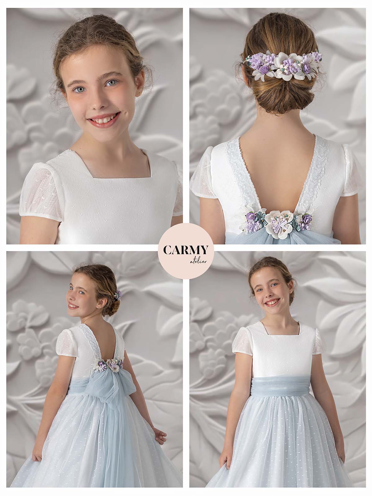 Este encantador vestido de comunión está diseñado con un aire delicado y romántico.
